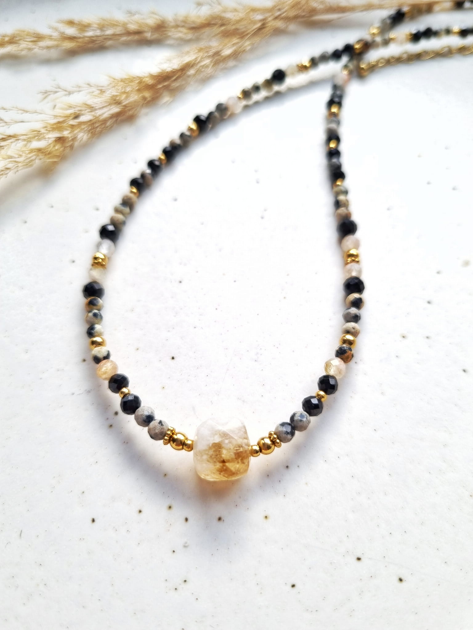 Z kolei kamień słoneczny, jak sama nazwa wskazuje, jest esencją słonecznej energii. Jego migoczące drobinki przypominają o iskrze, która drzemie w każdej z nas. To kamień, który dodaje siły i odwagi do bycia autentyczną i podążania za własną pasją. Kamień słoneczny to potężny zastrzyk optymizmu, który pomaga przezwyciężyć lęki i zwątpienie. Biżuteria z cytrynem lub kamieniem słonecznym to doskonały talizman dla każdej kobiety, która pragnie realizować swoje cele zawodowe, rozwijać pasje i czerpać z życia pełnymi garściami. Taki kamień to prawdziwy generator dobrej energii.